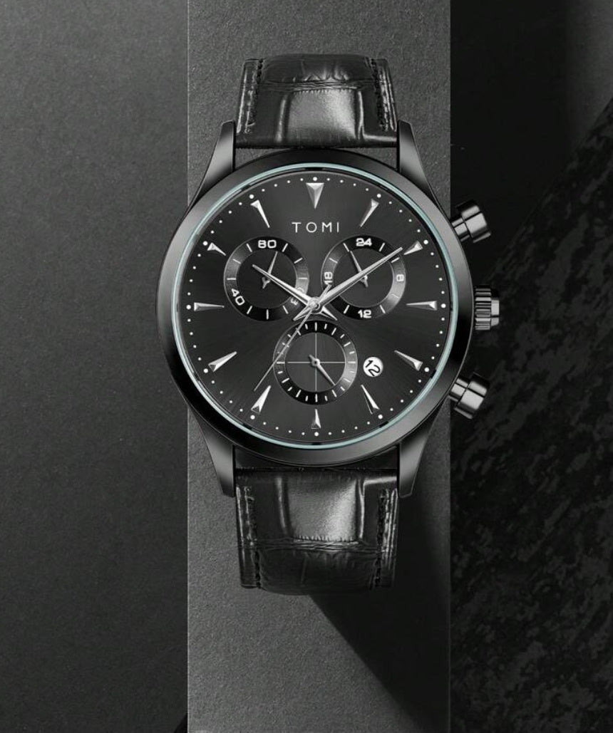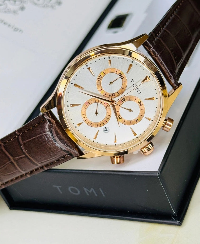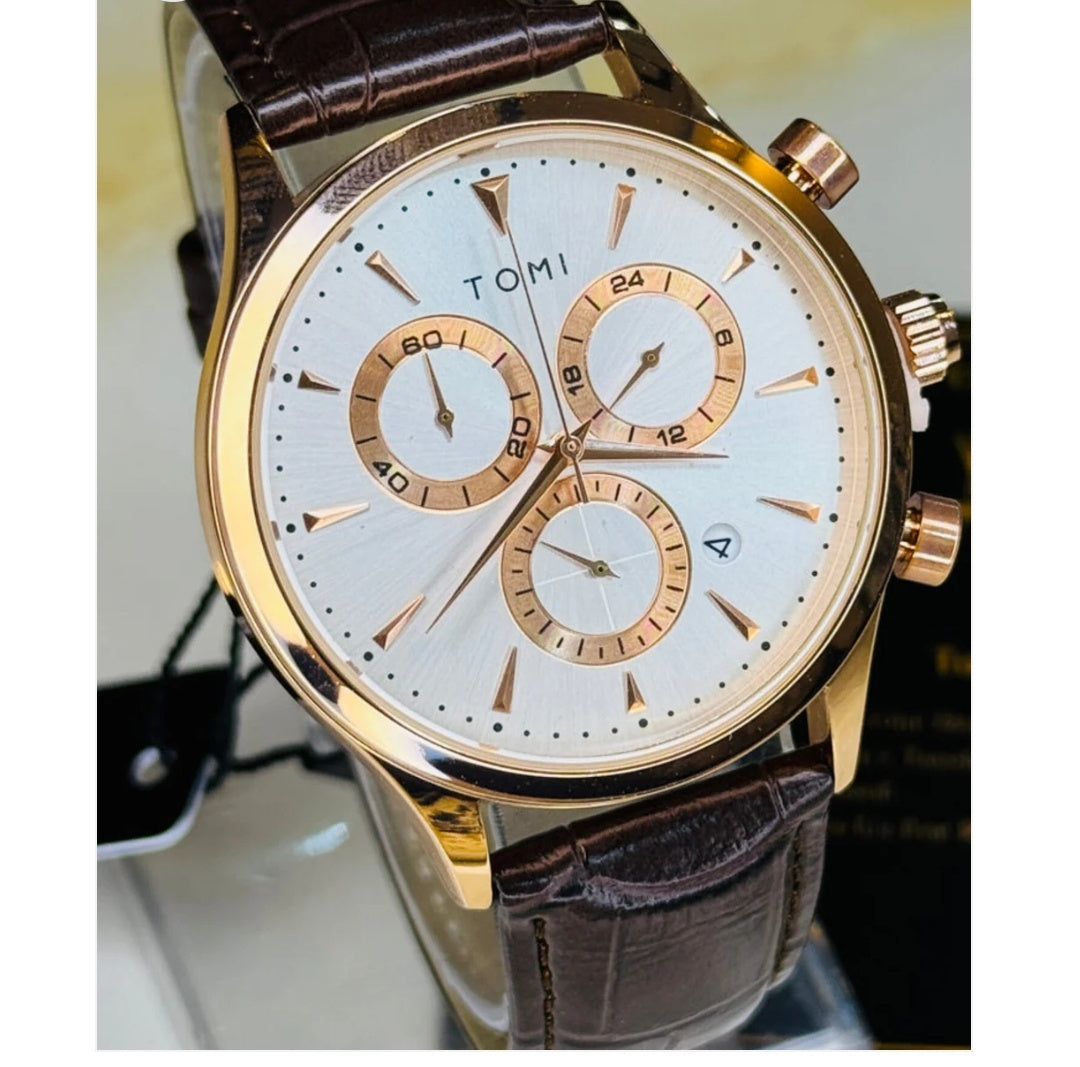 A Tomi Chronograph Premium Luxury Business Men's Watch With a Brown Or Black